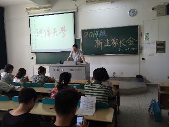 下午2点,会议准时开始。首先,曹书记代表学院表达了全院师生对新生的欢迎,并对学院的发展、师资力量、教学科研、课程设置、就业等相关情况向家长做了详细的介绍。希望家长配合学院工作,共同促进学生的全面发展与成才。在接下来的家长提问环节中,曹书记也耐心细致地解答了家长们关于本院本科生就业情况、各专业之间的区别与联系、考研及出国等问题的困惑。曹书记还特别突出了保研、考研与工作之间的关系,并提出了家长督促新生做好大学生生涯规划的重要性。紧接着,曾莉辅导员上台发言。曾莉老师则强调了优秀大学生不仅仅是学业有成,更是要关注社会,关注学校,关注个人综合素质发展的新青年。