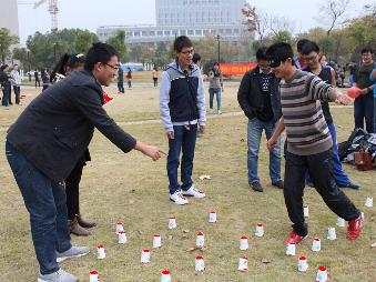 午后的阳光洒向河海校园,给这寒冷的冬天带来浓浓的暖意,来自10个学院的参赛队伍早已在西操场跃跃欲试,本次趣味运动会共有8个比赛项目,分别是地雷阵、斗转星移、翻云覆雨等。两点整,比赛正式开始,各个参赛者都奔向了指定的比赛场地,脸上写满了紧张和激动,誓要给各自学院争光。