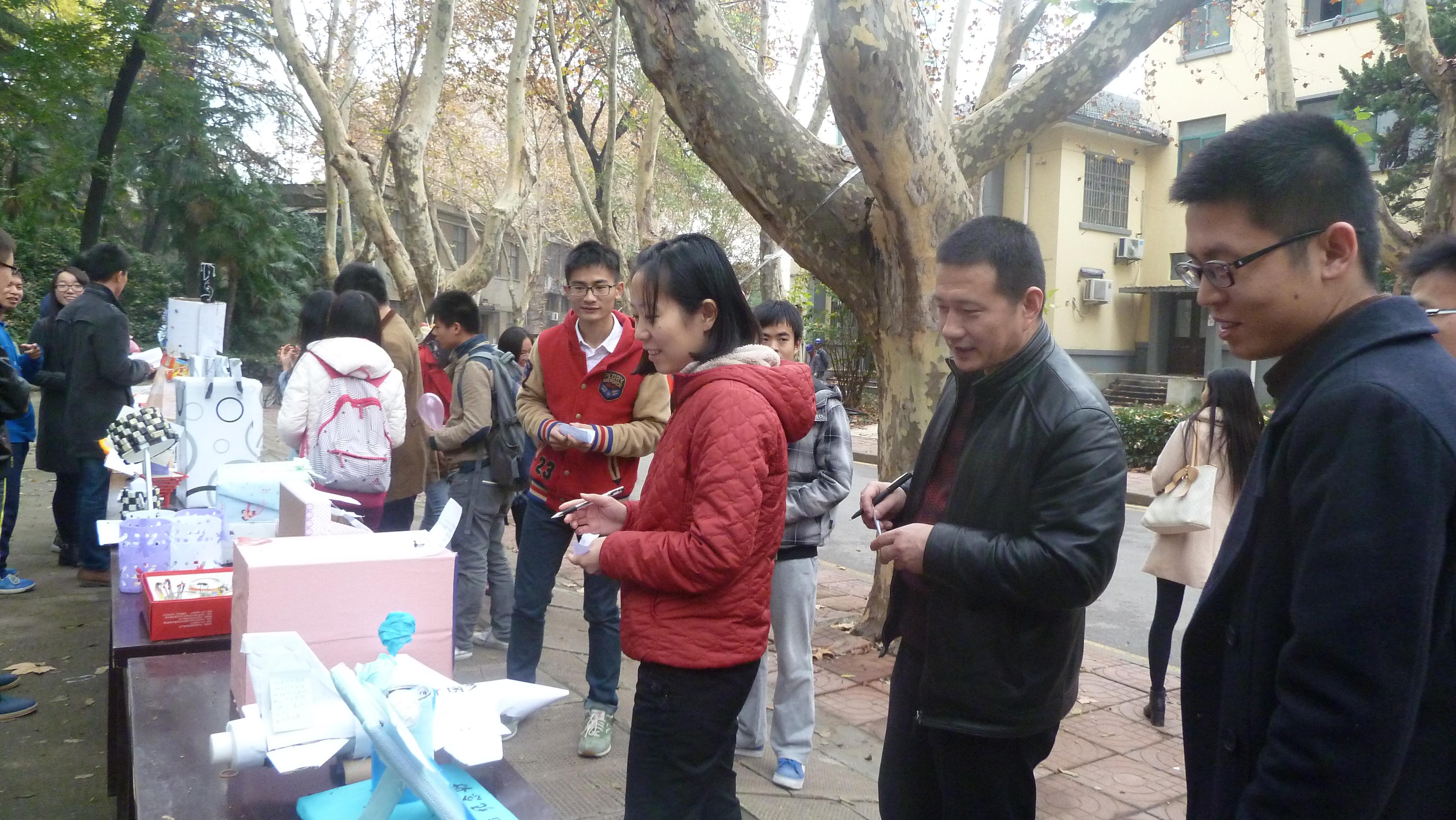 本次活动共征集到作品近50件,作品均为在校研究生利用废品手工制作而成。活动伊始,来自各学院的参赛者便踊跃了起来,他们为现场观众介绍作品,力求为作品多争取宝贵的一票。活动吸引了众多同学、部分学校教职工以及来校锻炼的老年人的关注和参与。活动中,学院党委曹松祥副书记、院办薛峰主任以及研究生辅导员焦娇老师也来到了现场,他们认真地听完同学们对自己作品的介绍后,也为自己喜爱的工艺品投了一票。本次现场投票的活动中还增加了环保知识问答的环节,这不仅丰富了活动的内容,同时也普及了环境保护的知识及理念,获得了现场观众的广泛赞许。
