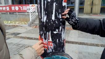 经过团支书的策划,班长的主持,全体成员的积极参与,给排水四班开展了清除小广告活动。上午八点半,同学们拿起刮刀,带上鞋刷,在寒风中拿起沾水的湿抹布与小广告开战了。经过同学们将近3小时的激烈战斗,最终斩获颇丰。中午十一点半,带着俘虏,我们来到了班长提前申请的教室中。在团支书的主持下,我们同学各自发表了自己对此次活动的看法与感悟。同学们虽然忍受寒冷,但都快乐满足。至此,约中午十二点,活动圆满结束。