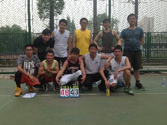 紧接着就是备受瞩目的五对五正规比赛了,比赛由11级周青辅导员和年级体委柴家盛同学担任双裁判。第一节比赛,给排水专业的同学明显更快地进入状态,以13:6的比分远远领先环工同学。短暂休息时刻,环工同学在最短的时间内调整战术,在中场结束时以18:18扳平了比分。第三节开始,给排水同学有些体力不支,环工同学趁机追赶,以31:27反超,把比赛拖入了白热化的第四节。给排水同学看形势不妙,调整人员和战术奋起直追,在队长的带领下一度反超比分。但最后在环工同学的坚持下,以46:43小胜给排水同学。
