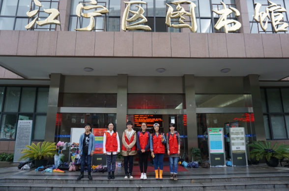 雨淅淅沥沥地下着,但正所谓心晴,雨亦晴,我院七位同学仍热情不减,早早等在公交站前准备前往江宁图书馆开展本次志愿服务活动。
