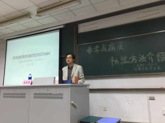 马红兵院长首先为我们介绍了春季可能会发生在我们身边的各种疾病,如乙肝、痢疾、流感等,提醒我们要对可能存在的疾病隐患加以防范,提高了同学们对春季疾病防控的重视,也让同学们了解到了如何在患病后及时准确地获得治疗。