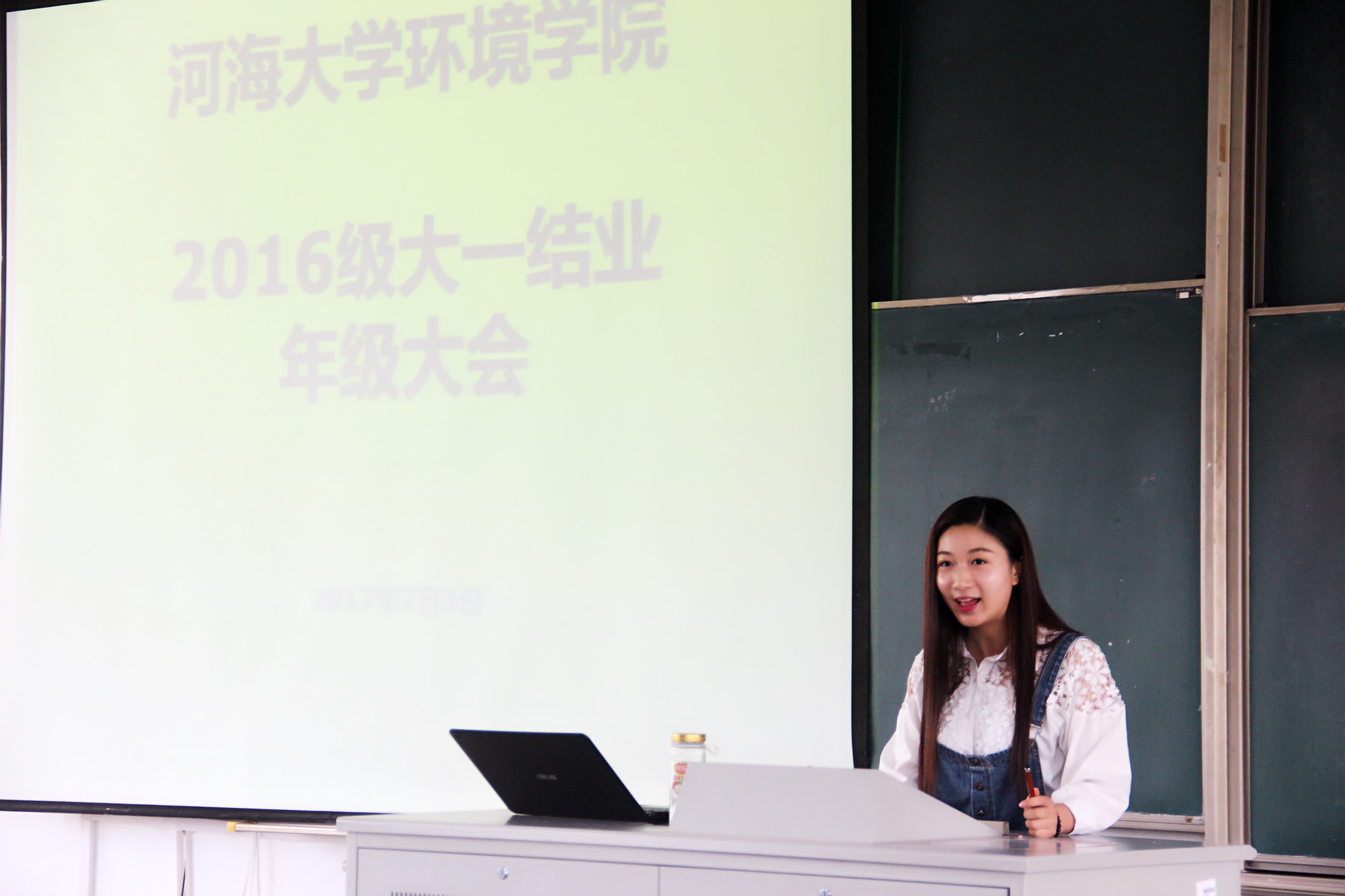 最后金意倩老师进行了简短的大一结业年级大会,并布置了暑假作业:写一份简历和两封分别给一年后和三年后自己的信。随后16级全体成员移步小浪底拍摄了班级和年级的合照。
