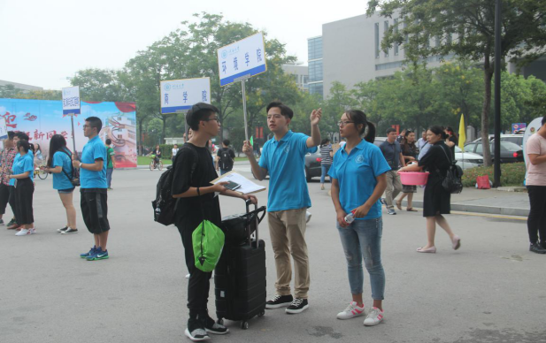 在东门和南门的同学主要负责导引的工作,他们举着“云顶国际yd333”的牌子,为学生和家长提供帮助;在文体中心的同学提前准备好了新生入学所需的各项材料;在骏园接待点工作的同学则为新生更方便的入住宿舍而努力着。