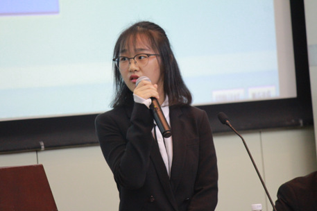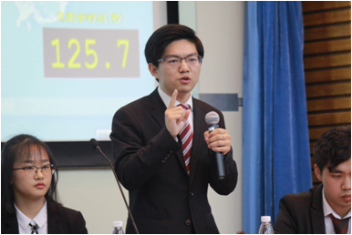 二辩杨诚学长眉头紧蹙地思考着如何拆解对方的论点论据