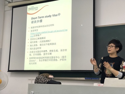 这次会议主要向同学们介绍签证的办理问题以及赴英的一些注意事项。向同学们完整的介绍了Short Term study Visa 的申请步骤,以及所需要准备的材料。在介绍完成后,同学们对仍有疑问的地方经行提问,都得到了王晶老师耐心的解答。
