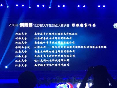 次日举行了江苏省大学生创业大赛的闭幕式,并公布了获奖名单。南京海青创环境工程技术有限公司成功地获得了江苏省大学生创业大赛的金奖,顺利晋级国赛,团队项目在闭幕式上进行了展出。这次比赛展现了云顶国际yd333学子们优秀的风采,也是云顶国际yd333今后长期开展学生创业项目的优秀范例。