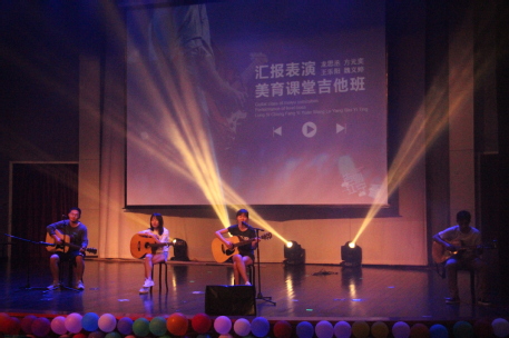 “青年兴则国家兴 青年强则国家强”,美育课堂是学院为增长同学们知识面,培养全方位人才而创办的教学课堂。在晚会上,美育吉他班的同学为我们带来了他们的汇报表演,台下的观众连连叫好。
