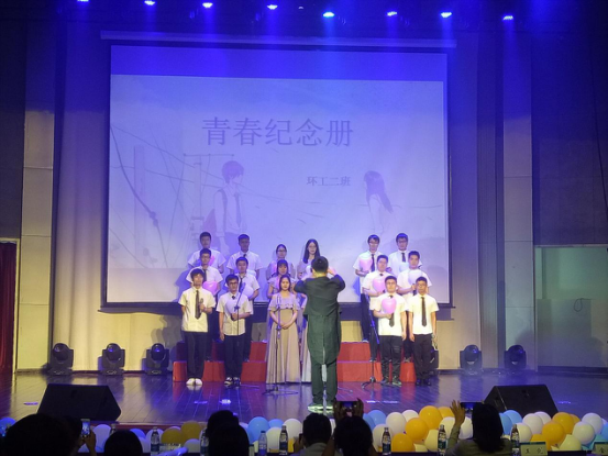 接下来,就是本场晚会的主角们——18届云顶国际yd333的毕业生们的主场。首先登上舞台的是14级环境工程专业2班的同学们。《青春纪念册》在同学们充满朝气的演唱下,仿佛将我们拉回到四年前,离家形单影只的我们,怀着对自由的渴望和未来的憧憬,拥抱河海。