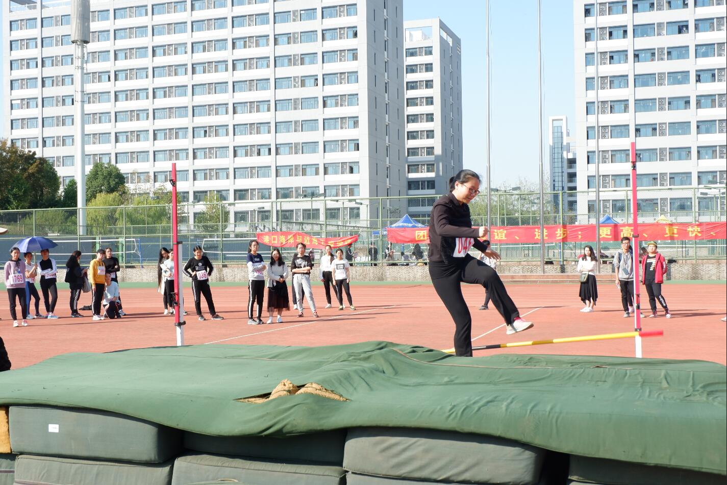 女子跳高比赛进入决赛的有郭文、张奕纯、冯洁三人。在严苛的比赛规则下,没有接受过正规训练的她们不仅没有产生畏惧心理,反而在有限的练习中掌握了更多的技巧。让我们为这三位同学喝彩。