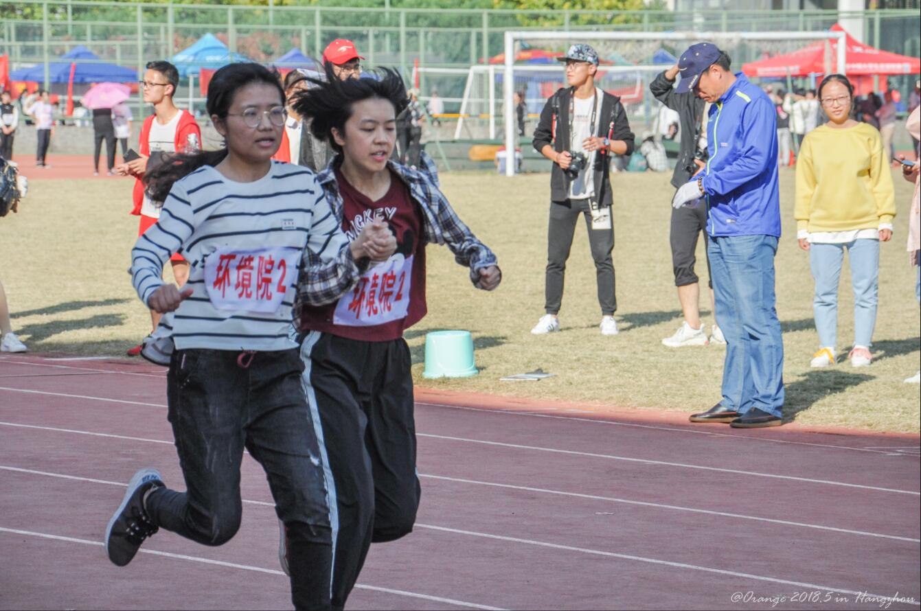 接着萧全意和周慧鹏同学、王玲娜和李思佩同学分别进入了男女子两人三足的决赛局。在这考验同学默契的比赛中,他们虽将脚绑在一起,但却行动如常,甚至追云逐电。最后男子两人三足的比赛获得了第一名的好成绩。