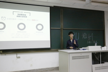 本次培训主讲人为17级云顶国际yd333PU助理张逸同学。培训伊始,张逸同学强调了大学第二课堂的重要性。第二课堂主要依托PU平台实行,为此,张逸同学向同学们介绍了第二课堂素质拓展学分的分类以及其认定方法,并在细致地解释学时的划分规则后,结合自身经验给出了许多宝贵的意见。随后,张逸同学阐述了PU平台的具体操作方法,重点指出同学们在使用中易发生的错误,对活动的“报名”“签到”“签退”和问题申诉进行了详尽的指导,同学们受益匪浅。
