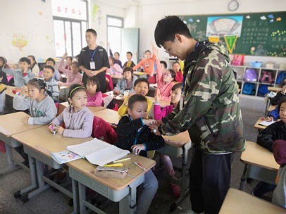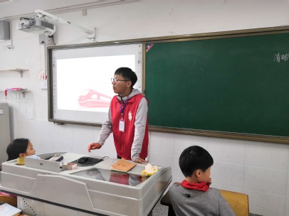 下午1点40,志愿者们乘坐地铁来到了将军山小学。在校园中,负责人曹玉洁同学为每位志愿者分成了3小组,每个小组有1位讲师和3位助教,他们分别进入3个班级为小朋友们传授有关垃圾分类的知识。