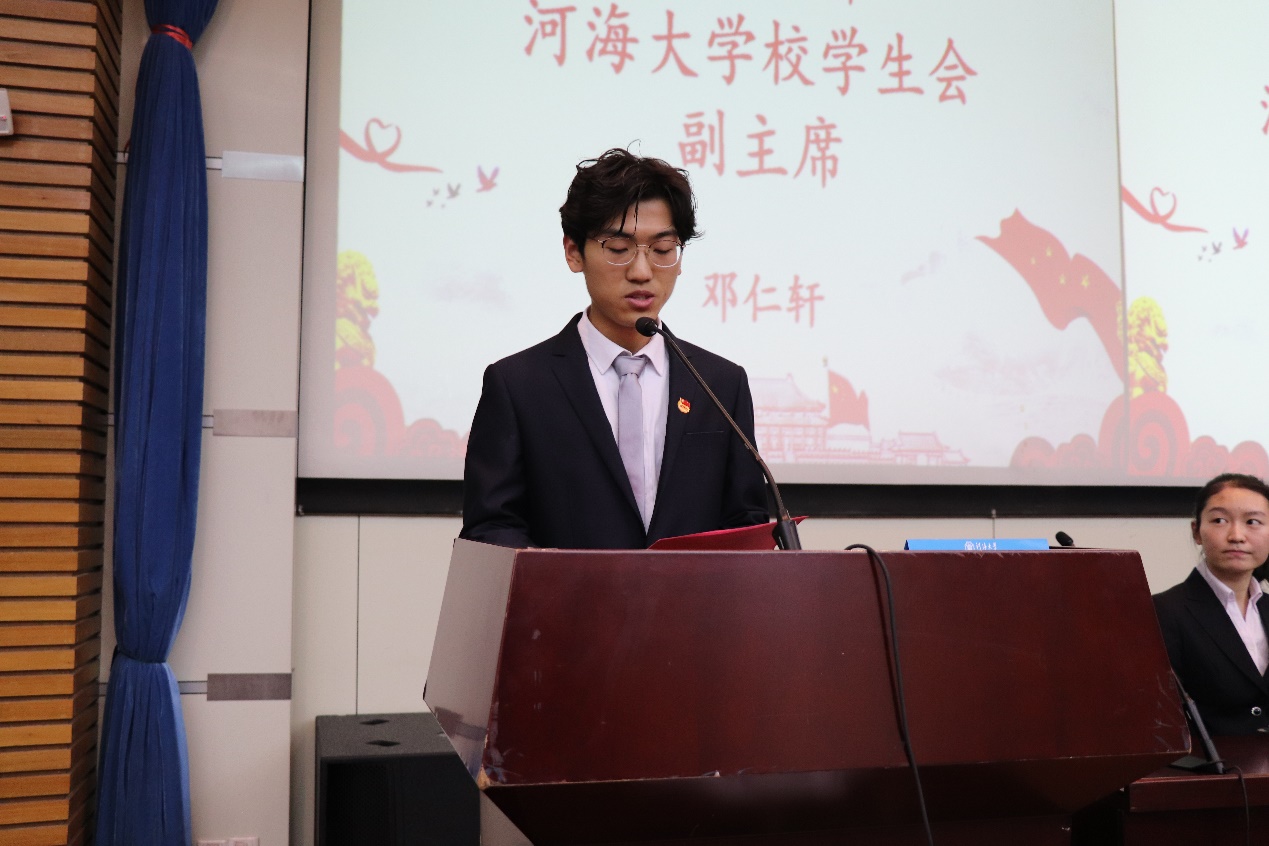 在接下来的学生代表致辞环节,校学生会常任代表邓仁轩同学和校学生科协副主席岳楠同学为开幕式致辞,他们回顾了云顶国际yd333过去一年中在举办讲座、参加校运会以及其他工作中的优秀表现和取得的优异成绩,并引用习近平主席对青年一代的期盼,提出对第九届学生会和科协主席团的希望。