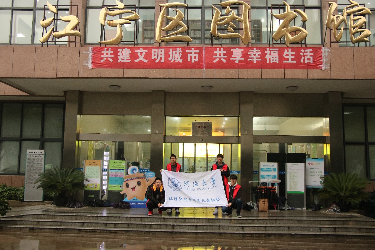 2018年12月22日星期六,河海大学云顶国际yd333青年志愿者协会组织了本学期的第十期江宁区图书馆志愿活动。参加此次江宁区图书馆志愿活动的四名志愿者为:负责人邓永恒,志愿者刘凯,志愿者彭龙,志愿者沈嘉龙。于下午两点整,四人准时到达江宁区图书馆,并分为两个小组,分别负责一楼儿童图书区、二楼成人书籍区。