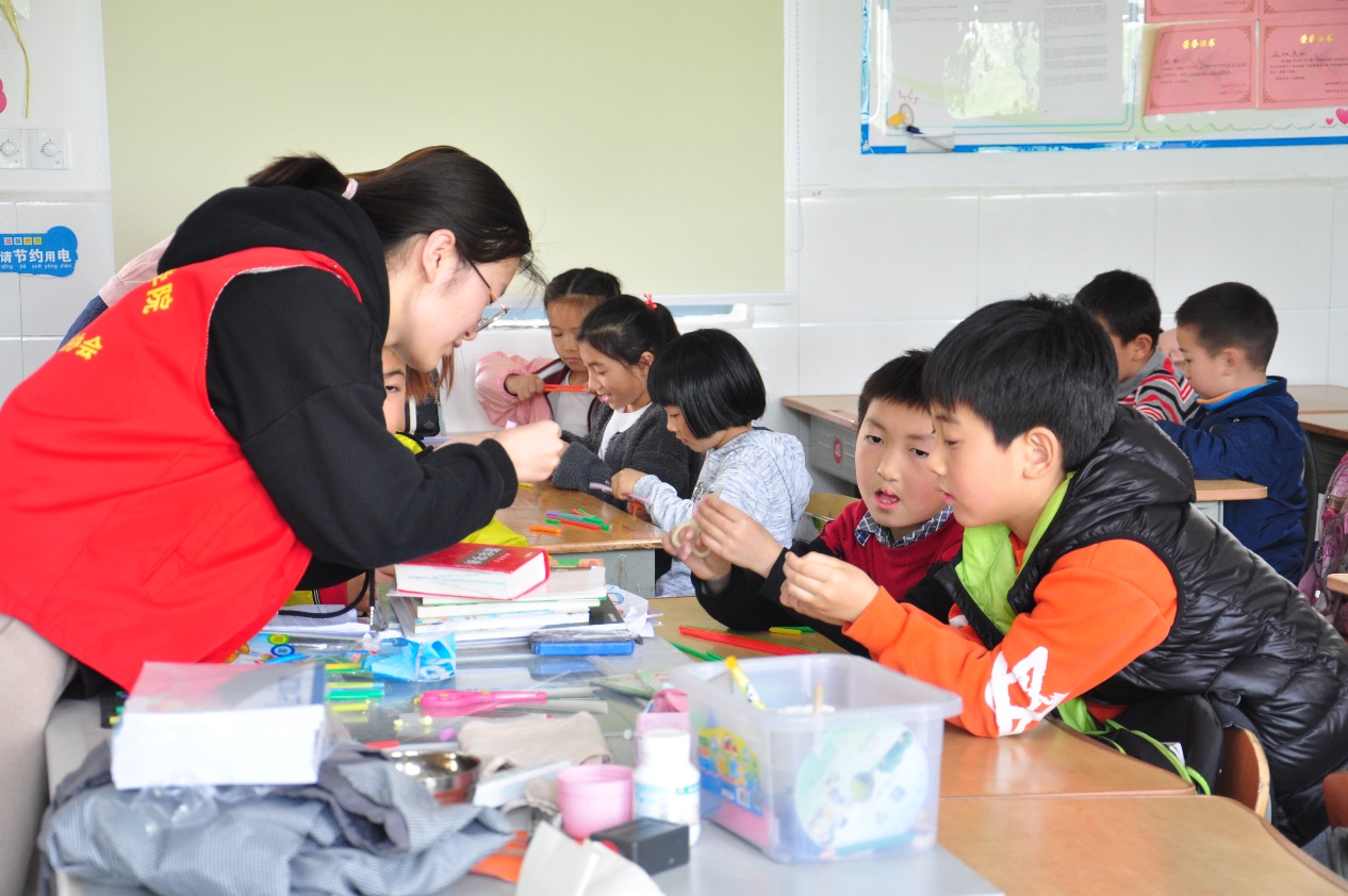 讲解和提问部分结束后,就是小朋友们最喜欢的动手环节。志愿者给小朋友们分发吸管、胶水等手工材料,随后播放教学视频,向大家演示如何制作出吸管花。教室里的气氛更加热烈,小朋友们全身心投入其中,而志愿者们则耐心地指导他们,帮助他们做出令自己满意的作品。