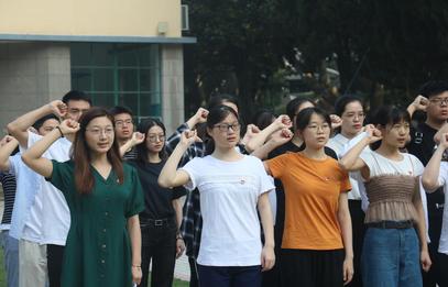 最后便是国旗下党员宣誓环节。由15级党员潘泓哲领誓,全体党员宣誓。大家右手抱拳,严肃地举起右手过肩。“我志愿加入中国共产党,拥护党的纲领,遵守党的章程,履行党员义务,执行党的决定,严守党的纪律,保守党的秘密,对党忠诚,积极工作,为共产主义奋斗终身,随时准备为党和人民牺牲一切,永不叛党。”誓词铿锵有力、鼓舞人心,大家对祖国的热爱、对共产党的敬仰更进一分,誓将为祖国建设为共产主义建设奋斗终生。