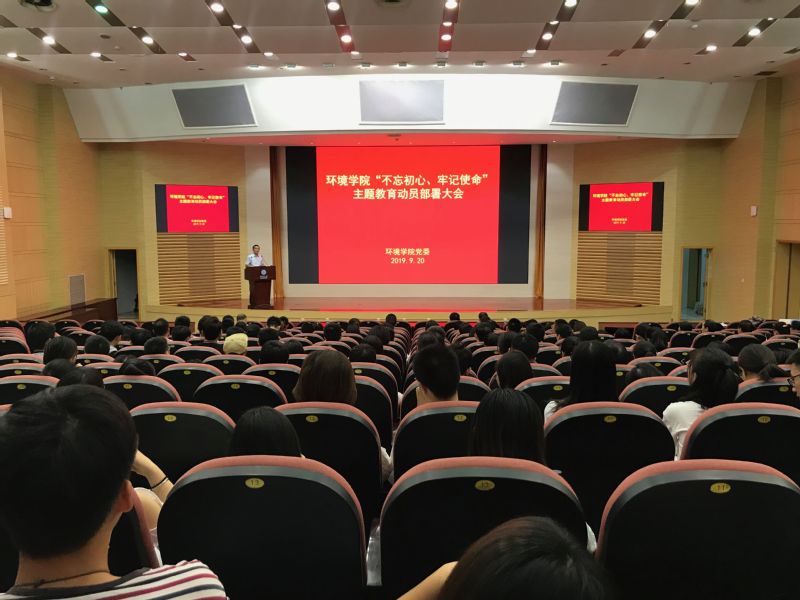 9月20日下午2点闻天馆108,环境学院党委召开了“不忘初心、牢记使命”主题教育动员大会,全面部署了主题教育的各项工作。院党委书记笪学军作动员讲话,院领导班子成员和全院师生党员参加了动员大会。