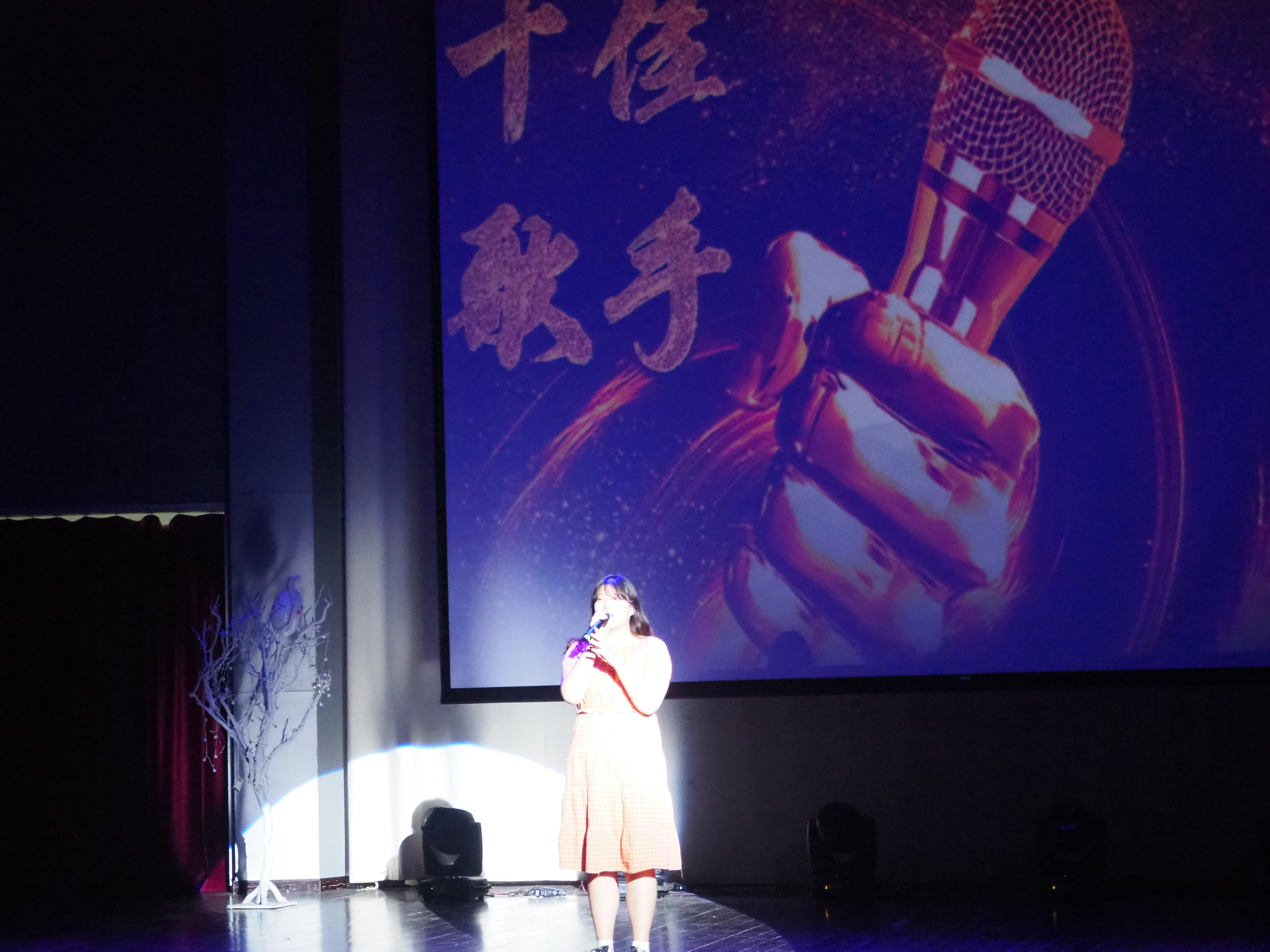 欣赏了几个节目之后,为了让大家稍作调整,主持人进行了互动环节——接歌词,规则十分简单,听到音乐后如果知道怎么唱,就马上举手示意工作人员,拿到话筒唱出接下来的部分,奖品就属于这位同学啦。此环节放了《光年之外》《野狼disco》《小半》《水星记》等歌曲,接上歌词的九位同学获得了具有纪念意义的帆布包。
