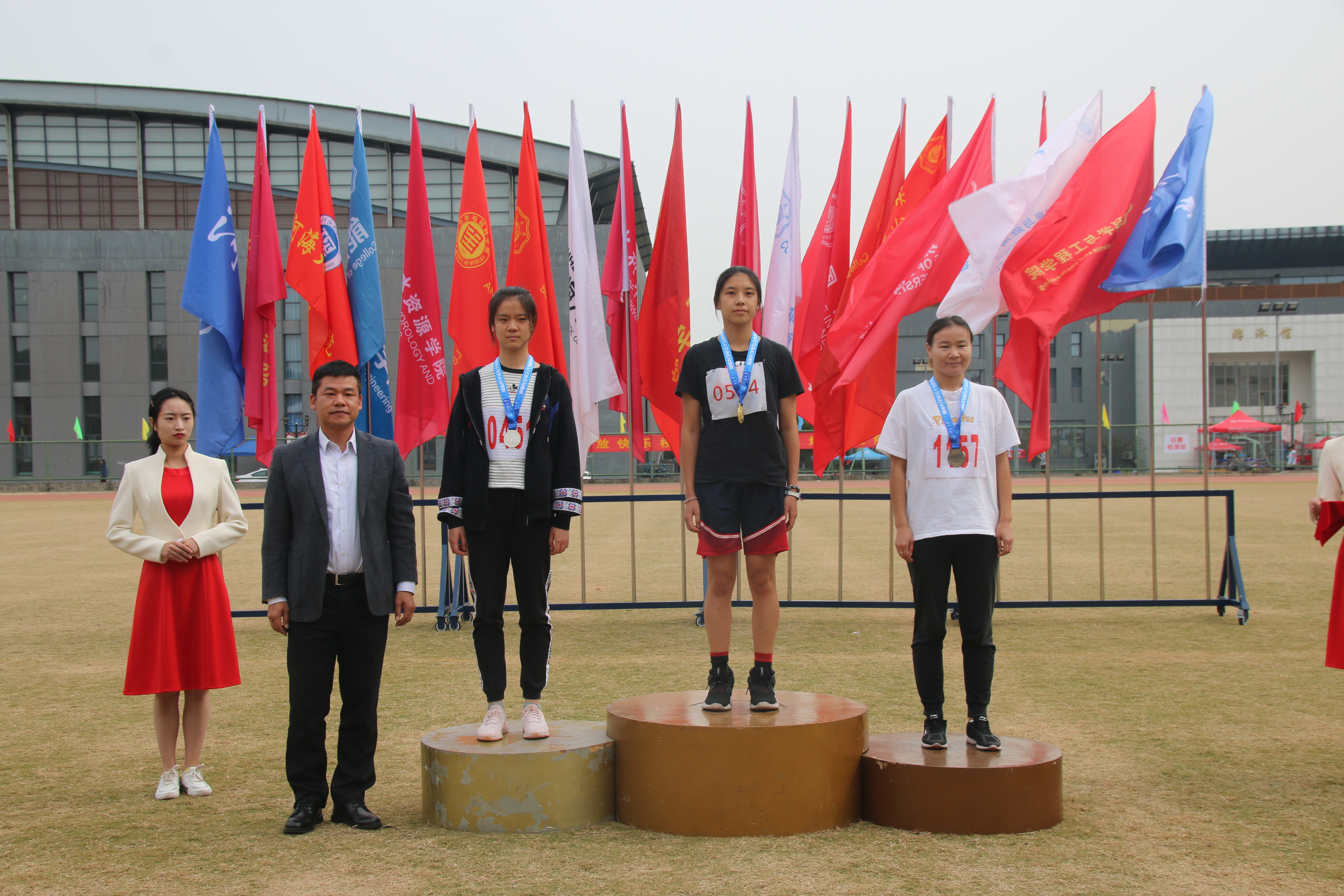 女子跳高比赛中,环境院的孙雨辰、周德贝、王瓶瓶腾空一跃,最终孙雨辰同学获得了第八名的成绩。