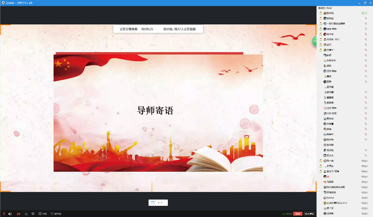 虽然班导师王龙飞因为出差不能出席本次团日班会,他还是托团支书带来了他给同学们的一封信,分享了他的感悟以及对同学们的期望与勉励。他引用了“教育部致全国大学生的一封信”中的一部分内容,希望同学们做好“守护者”,不仅要守护自己的平安,还应担当一份使命,做科学的传播者、谣言的粉碎者、健康的守护者、家庭的关爱者;做好“修行者”,陶冶情操、提升素养、自主学习、自我提升;做好“识途者”,做好个人防护和返程规划,游必有方。他还安抚部分同学因疫情产生的连环效应焦虑的情绪,勉励计划考研、保研的同学,给同学们打了一剂强心针。