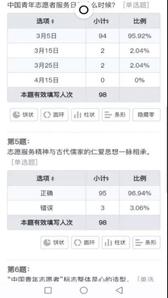 在观看视频之后,同学们认真完成了试题问卷。从反馈结果可以看出,同学们对视频中的基础知识掌握程度较高,主要问题出现在对国家在志愿服务方面的认识尚不完善,但总体完成度良好,正答率均在85%以上。