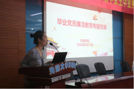 为了加强对即将走向社会或继续深造的毕业党员的廉洁教育,河海大学云顶国际yd333于2020年6月17日下午在水利馆301会议室举办了毕业生党员廉洁教育大会。本次会议由云顶国际yd333党委书记笪学军老师主讲,院组织员焦娇老师主持,党委副书记戴玉珍老师、毕业班辅导员以及2020届毕业生党员参加了本次教育会议。