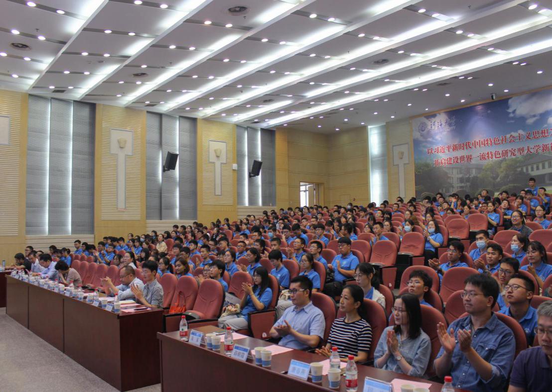 班导师代表张焕军老师在发言中希望2020级新生能从明确自己的职责、培养各方面能力和提升自己的竞争力三方面思考自己的未来之路,建议同学们积极参与活动,培养创造力,在平衡学业与人际关系的同时不要忘了时常联系家人,做一名优秀的河海人、水之子。
