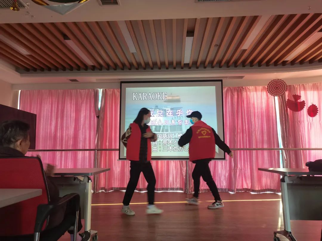 活动开始,志愿者们拿出准备好的歌曲,纷纷为老人们献上自己的拿手“绝活”。时代变迁,唯有经典的旋律能穿过岁月的重峦叠嶂,直抵人心。一首首红歌在志愿者口中传唱,正值青春的志愿者与芳华不再的老人们目光相触,默契便悄然滋生。老人们年轻时的经典曲目从小辈口中唱出,是延续,更是传承。台下的老人认真聆听,兴到浓时便接过话筒加入其中。