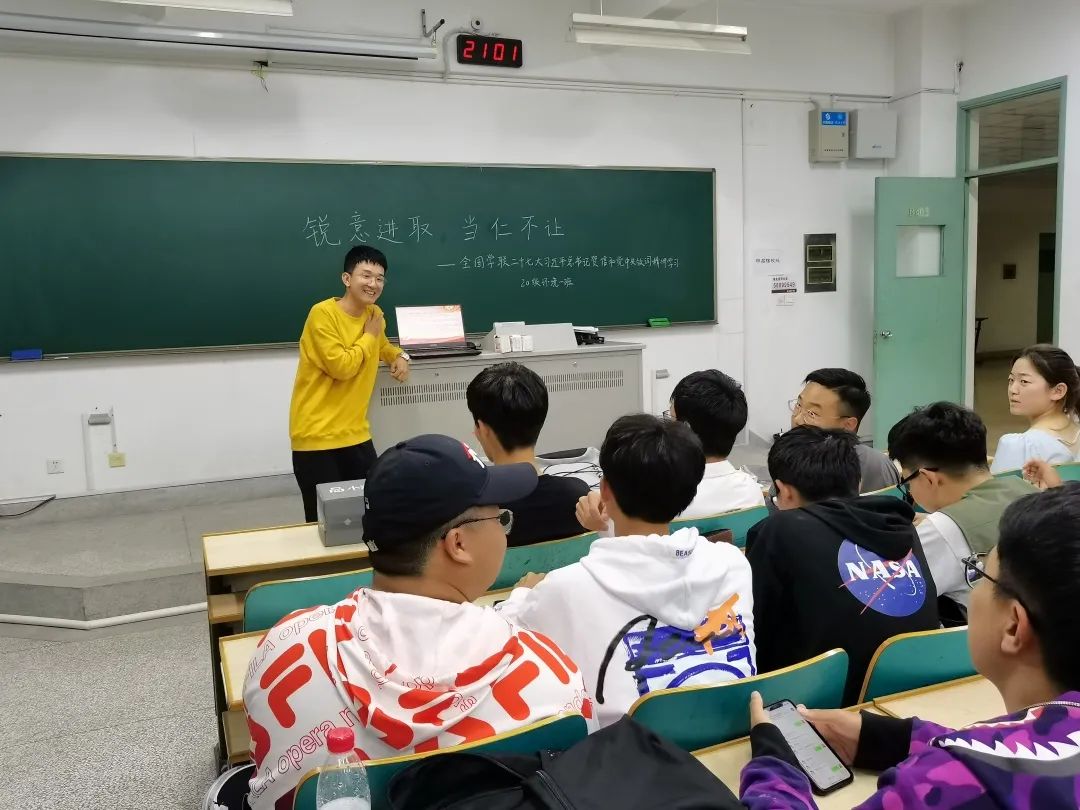 2020年11月19日,2020级环境一班召开“十九大精神学习”班会。本次会议上,团支书带领同学们深刻学习了十九大精神,明确了新时代大学生所肩负的责任和应该养成的优良品质。同学们也在学习中提高了自己的品格修养。