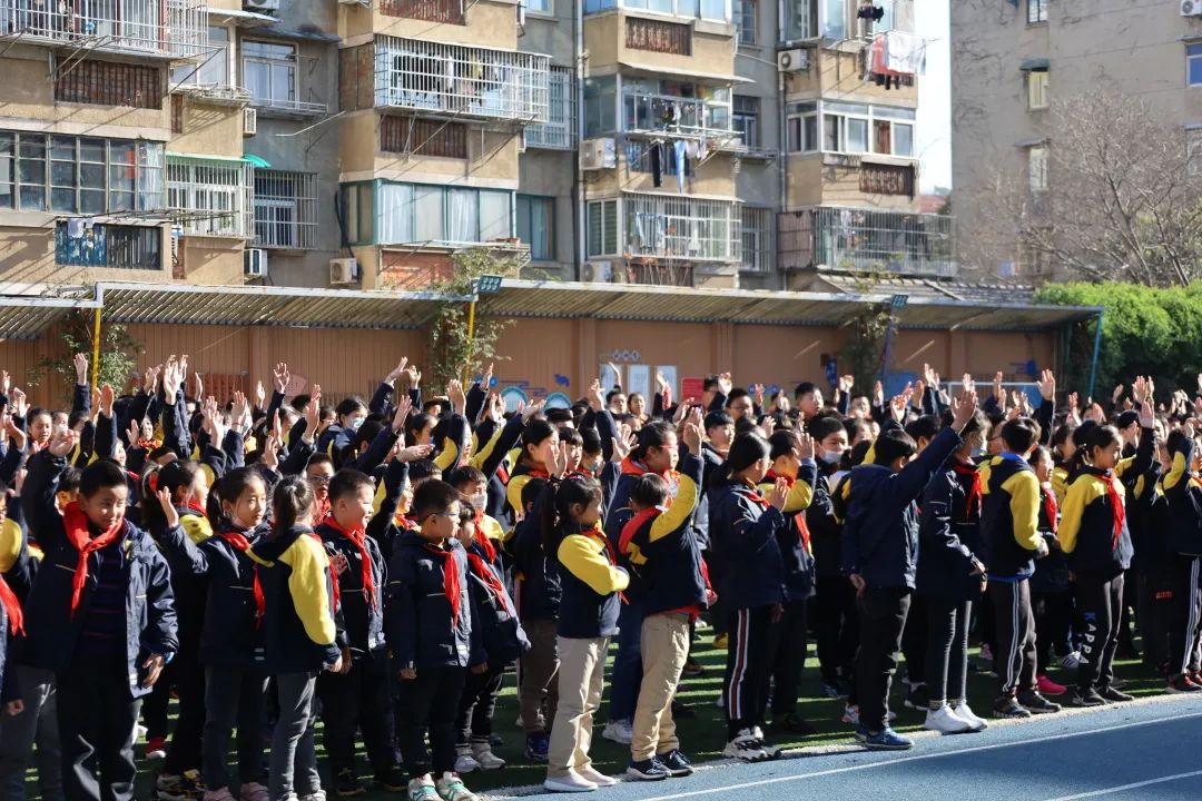 当五星红旗高高升起,志愿者进行了国旗下的演讲,为海英小学全校师生讲解节水的重要性。演讲结束后,志愿者们走进了学生的队伍里,与学生们进行节水问答的亲密互动,为学生们带来了丰富的节水知识。