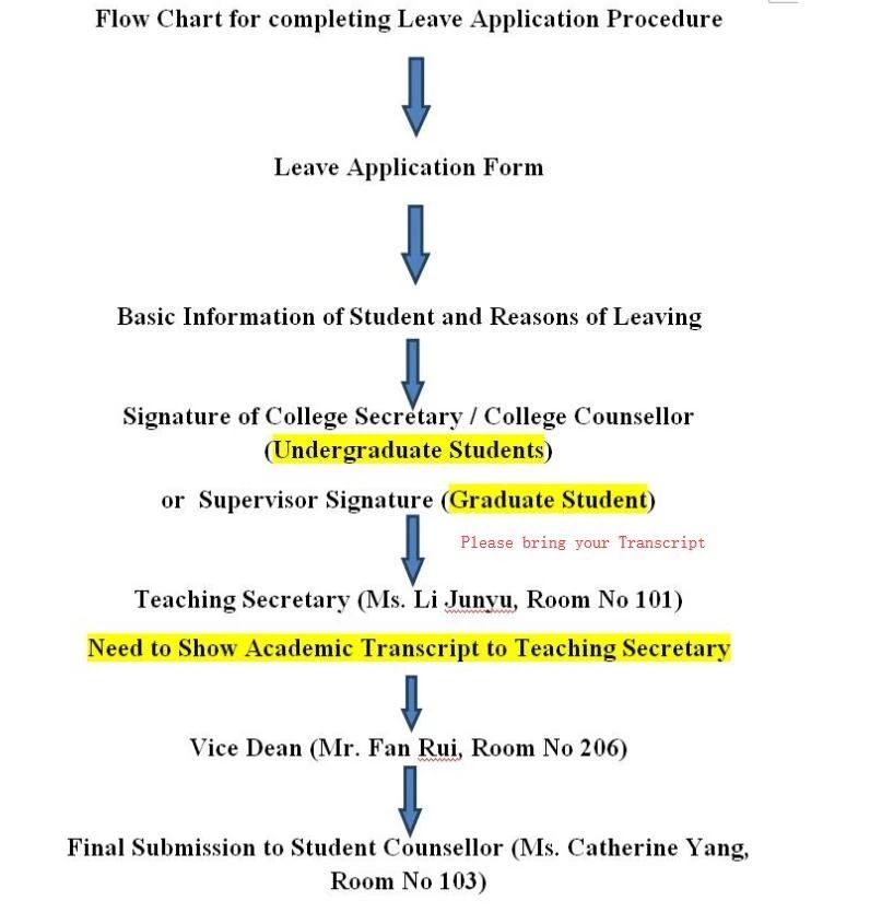 If you need to attend academic seminar or do works relate to your study affairs, be sure to download The Leave Application Form(请假申请表) to get the permission from the supervisor and staffs of International school before leaving. During your absence, the scholarship will be suspended. After he/she come back and register with the office, apply for scholarship recovery approval with the International School, and restart the scholarship transfer.
