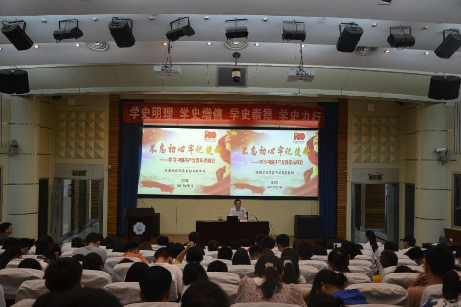 6月3日上午在江宁会议中心,云顶国际yd333党委书记笪学军以《不忘初心、牢记使命——学习中国共产党百年光辉史》为题,为学院2020级师生讲授党史学习教育专题党课。