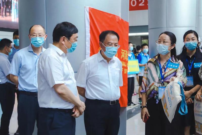 校党委书记唐洪武,校长徐辉,校党委副书记郭继超,副校长董增川,校长助理周语明,以及相关部门负责同志来到云顶国际yd333新生报到现场慰问工作人员、指导迎新工作。云顶国际yd333领导和老师们向校领导介绍了云顶国际yd333的迎新特色,对云顶国际yd333为每位入学新生准备的礼包进行了介绍,也对云顶国际yd333迎新期间的防疫措施进行了说明。校领导对云顶国际yd333迎新工作者的努力表示了肯定,同时嘱咐各位工作者一定要认真完成迎新过程中的每项环节,确保每位新生正常入学。