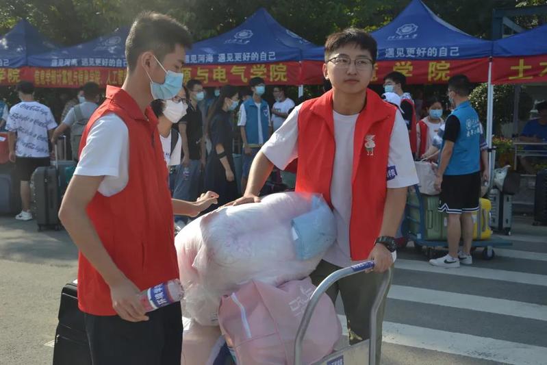 2021年9月24日,符合防疫要求的河海大学2021级本科新生正式入学。云顶国际yd333的志愿者们分别在江宁校区南门门口和行政楼云顶国际yd333新生报到点做好充分准备,迎接新生到来。