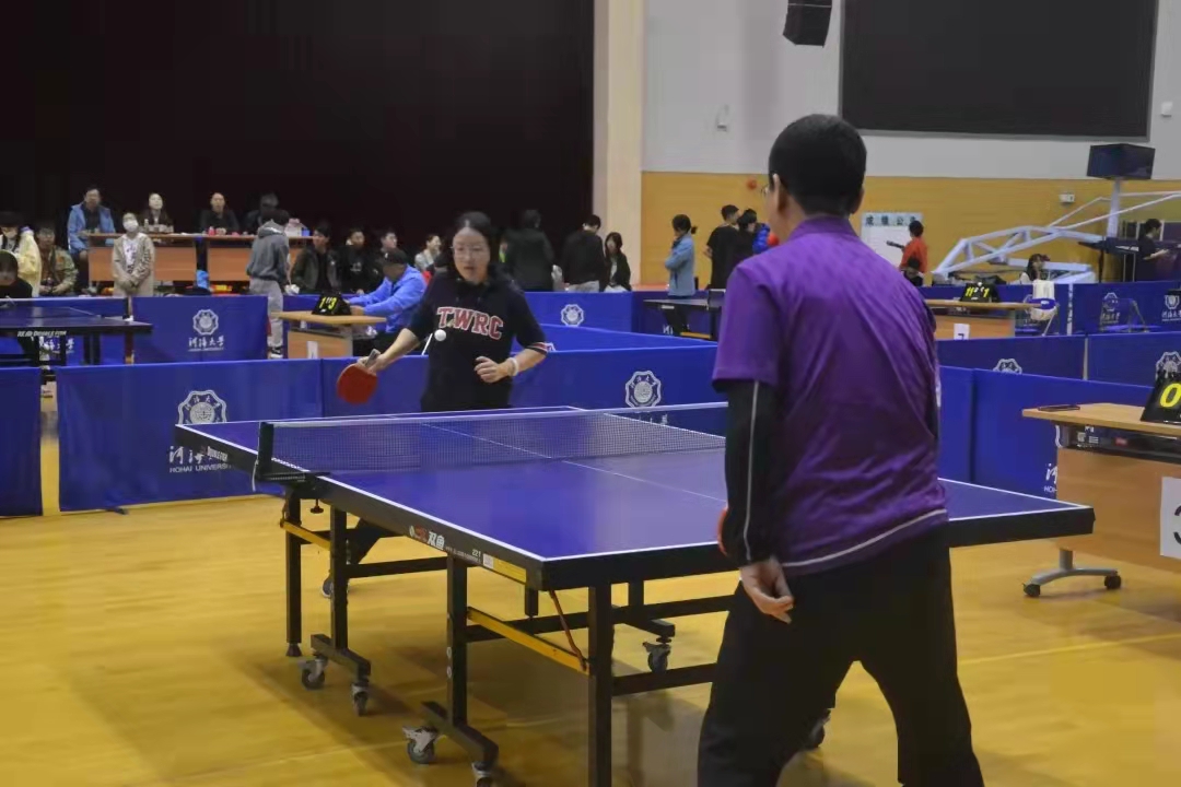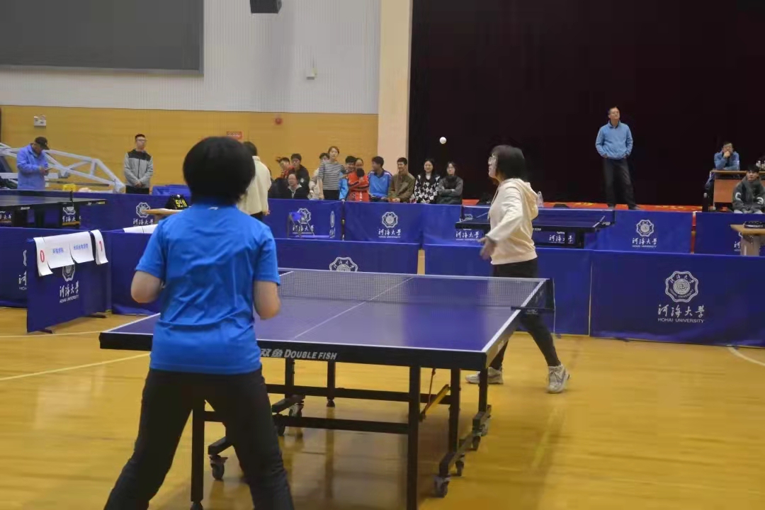 11月20日至21日,2021年“河海杯”乒乓球比赛在江宁校区体育馆如期举办。本次比赛共有来自三校区的21支学院(学部)代表队的168名运动员参加,其中我院乒乓球队由院党委副书记戴玉珍担任领队,带领研究生陈怡、本科生杜巧歆、项远哲、卢泓洁、王若愚、林肯在比赛中荣获第二名。下面让我们一睹队员们比赛时的风采。