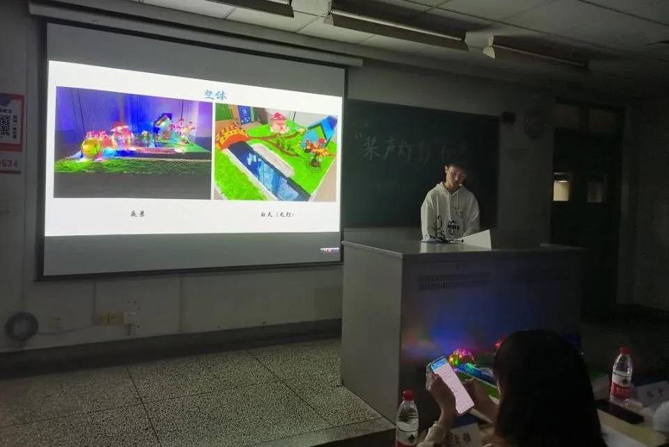桨声灯影,取自中国著名文学大家朱自清的《桨声灯影里的秦淮河》,本次比赛旨在利用作品表现出对环保的关切、对于水与光以及结构之美的理解。参赛选手们结合比赛主题与云顶国际yd333的绿色环保宗旨,利用环保材料进行作品制作。同学们依次上台进行展示与答辩,沙盘作品展现出灯光的色彩绚丽、变化多端,并将水与光完美结合;船只作品在静水中展现其一定的稳定性,美观大方、颜色优雅。评委从环保、作品表现、难易程度和细致程度对参赛作品进行打分,与同学们交流作品内涵意义并给予鼓励。