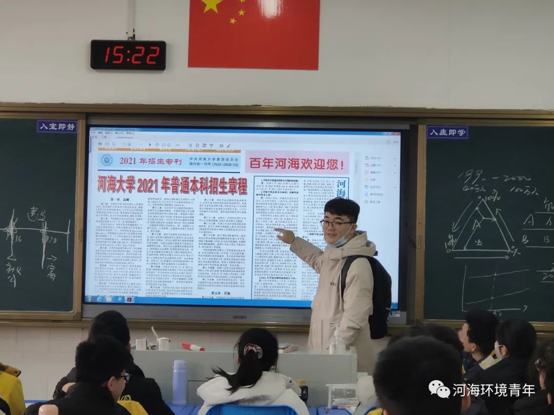 在联系了在校老师后,源泉工程泰兴市第一高级中学团队进入学校,开始走班宣讲。通过播放招生视频、校园生活vlog等让在校生认识并深入了解河海大学的历史文化及校园生活;通过展示招生报和招生三折页向同学们介绍河海大学在江苏招生的具体情况。