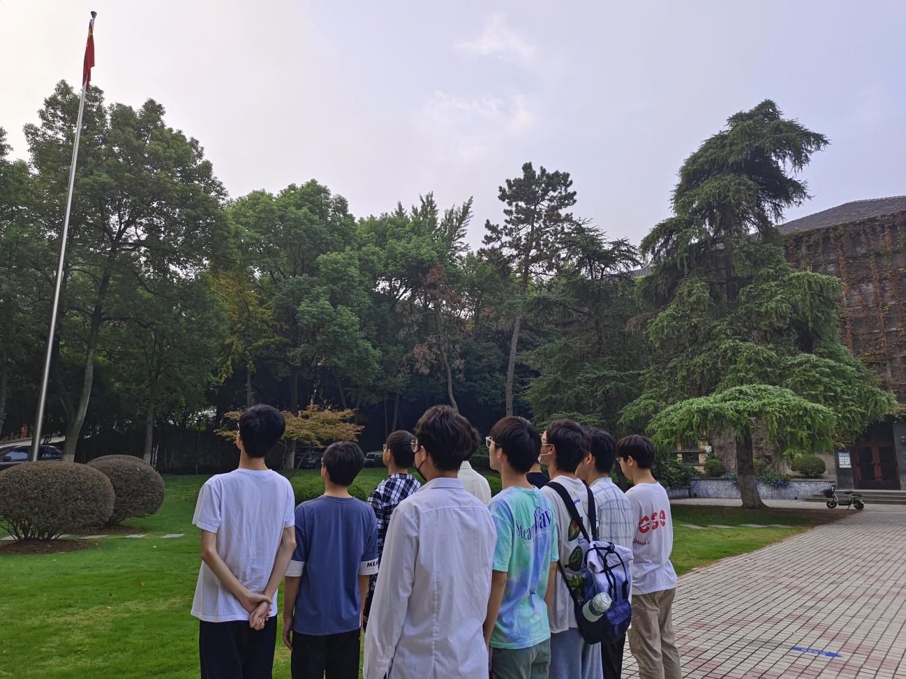 上午8点,活动正式开始,朱从师同学先是带领社区支部的其他同学们来到国旗台下瞻仰国旗。在这期间,朱从师也给大家再次详细介绍了我国国旗的设计理念与历史经纬,并给大家同时科普了党旗与八一军旗的设计历史,使大家进一步了解了其中的深刻内涵,强化了各位党员“爱党,爱国,爱军”的深切情感。