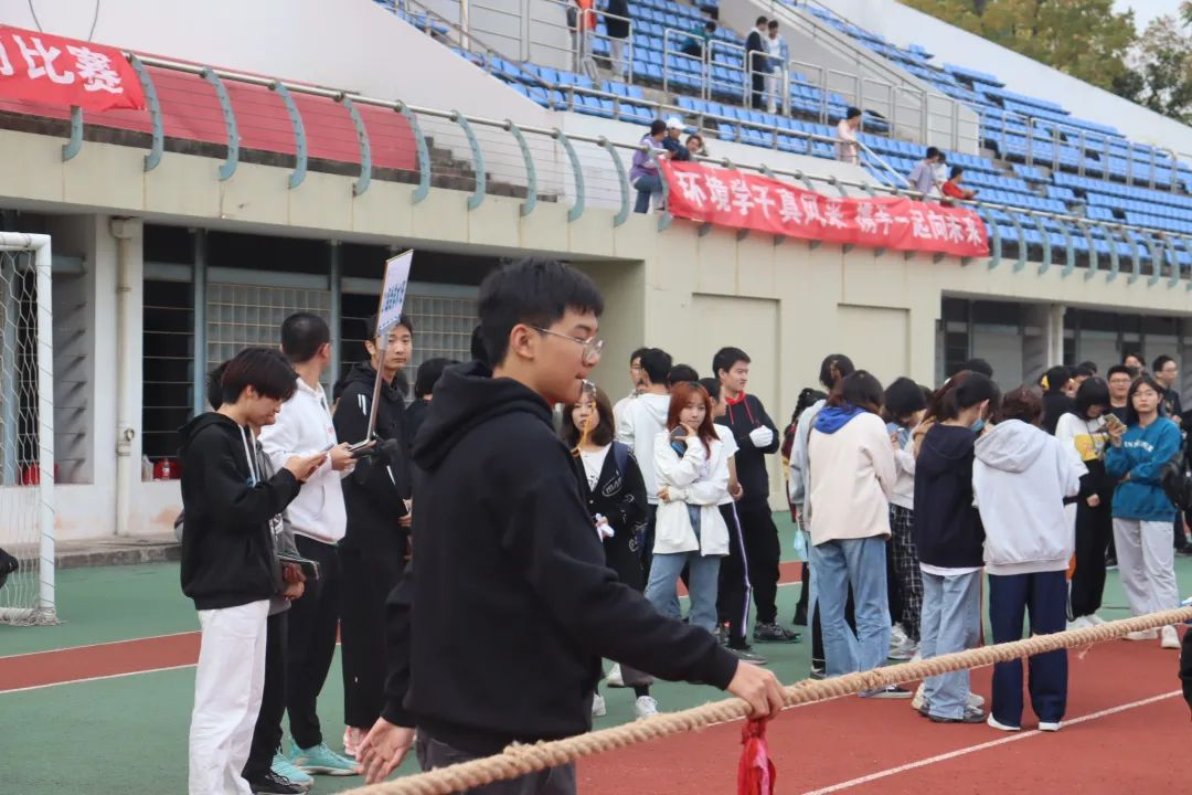 参与本次拔河比赛的16支队伍由环境学院21级、22级本科同学以班级为单位组成。本次比赛分年级进行,21级辅导员陈诗宇老师和22级辅导员张关强老师也来到了比赛现场为同学们加油助威。