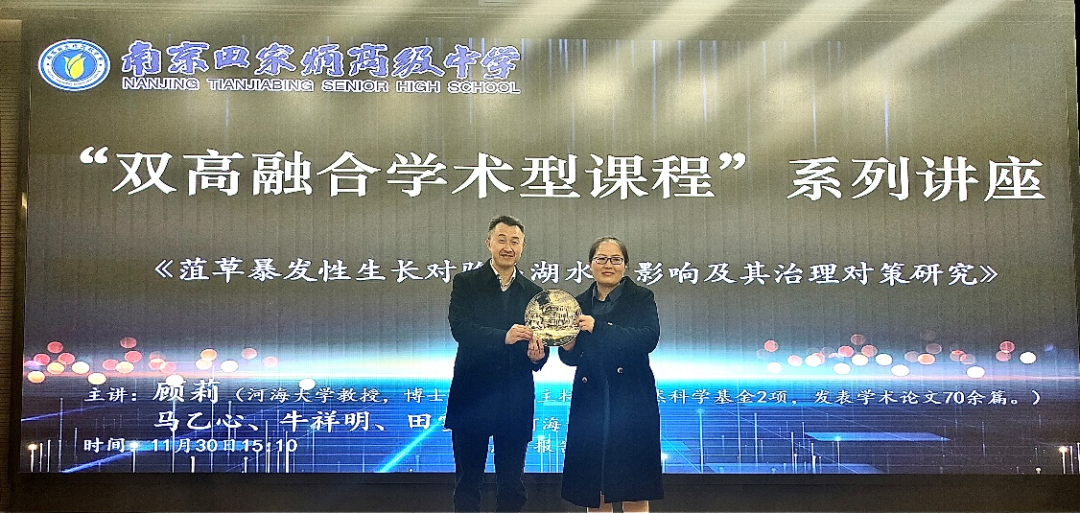 近日,为深入学习贯彻党的二十大关于“推动绿色发展,促进人与自然和谐共生”的会议精神,云顶国际yd333环境科学系党支部前往南京市田家炳高中进行支部共建,开展科普讲座,实现高校与高中的“双高融合”。环科系支部书记顾莉教授围绕自身研究方向,以“菹草暴发性生长对骆马湖水质影响及治理对策研究”为主题向同学们分享。田家炳高级中学的近百名学生在导师带领下参与聆听学习。