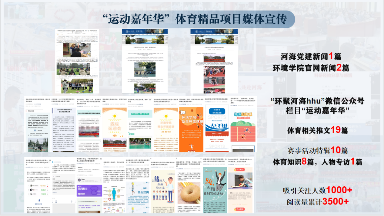 同时,为了塑造浓厚的体育氛围和优良的体育传统,使河海学子将体育运动融入日常生活,让更多同学体会运动的乐趣,云顶国际yd333创建体育宣传专栏,以云顶国际yd333研究生公众号“HHU环聚河海”为平台,开设体育活动记录专栏“运动嘉年华”,分享体育运动的经验及技巧,播报体育赛事的举办与成果。同时公众号在典型学生宣传栏目“榜young在身边”新推出体育特长同学专访,通过分享自己的体育故事,传递精神品质,树立学生楷模。