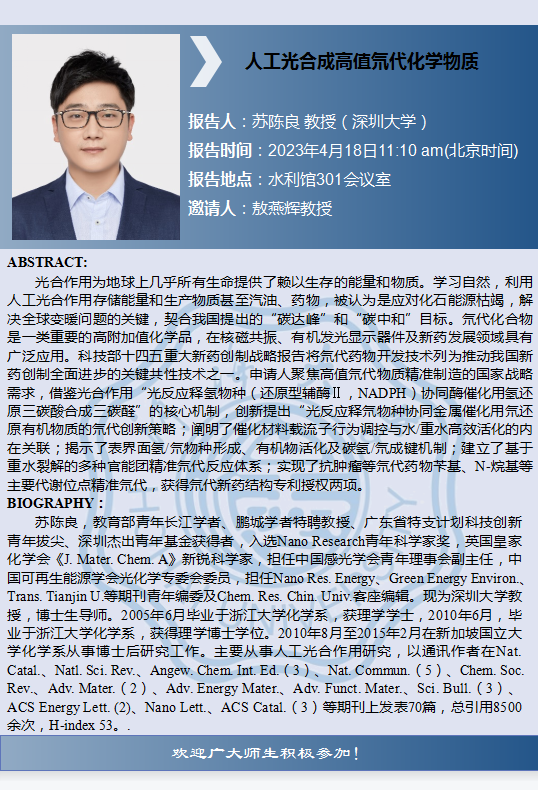 云顶国际yd333学术报告:人工光合成高值氘代化学物质
