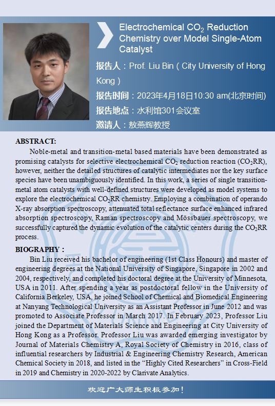 云顶国际yd333学术报告:Electrochemical CO2 Reduction Chemistry over Model Single-Atom Catalyst