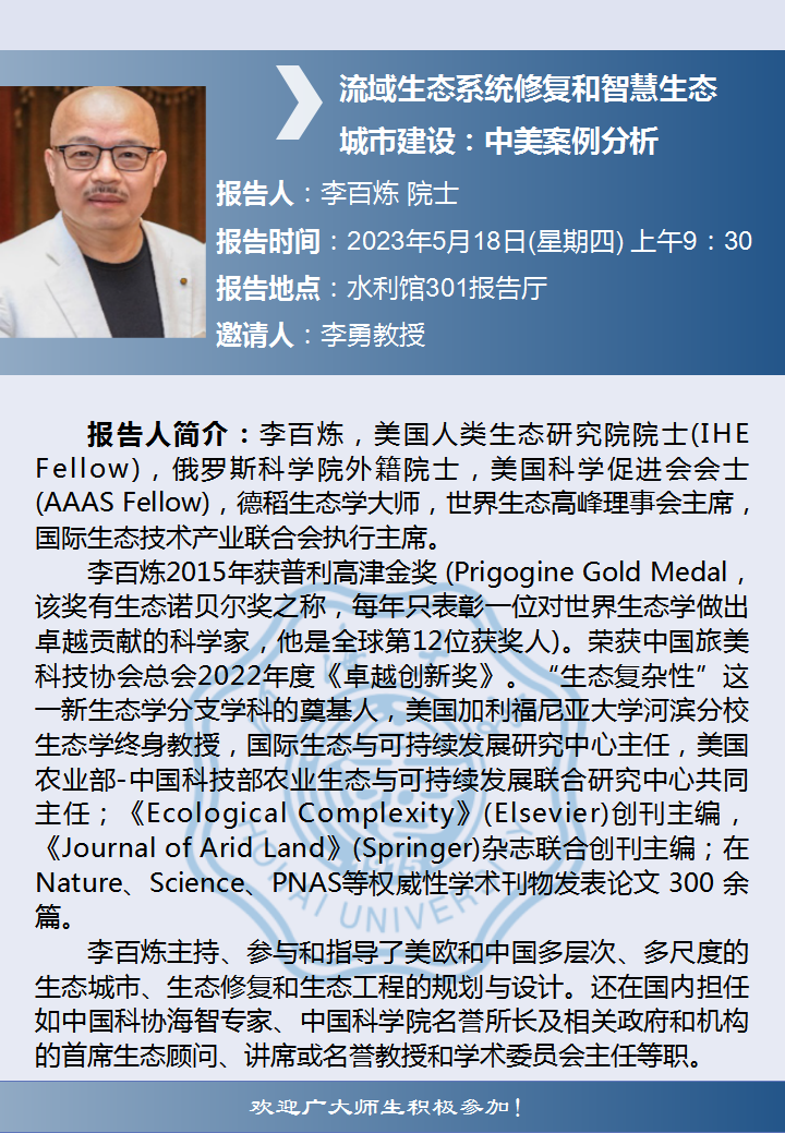 云顶国际yd333学术报告:流域生态系统修复和智慧生态城市建设:中美案例分析