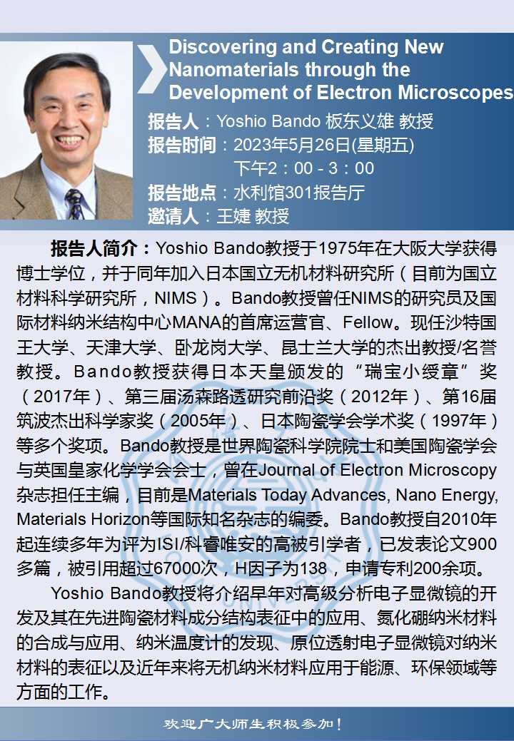 云顶国际yd333学术报告:Discovering and Creating New Nanomaterials through the Development of Electron Microscopes