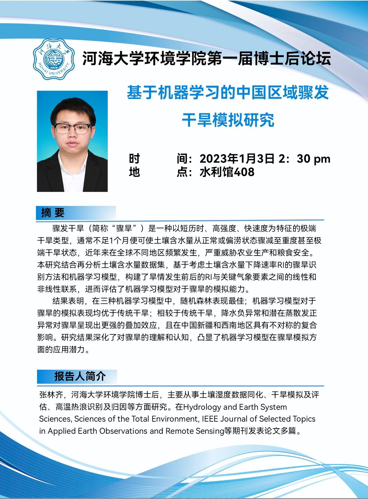 云顶国际yd333第一届博士后论坛:基于机器学习的中国区域骤发干旱模拟研究