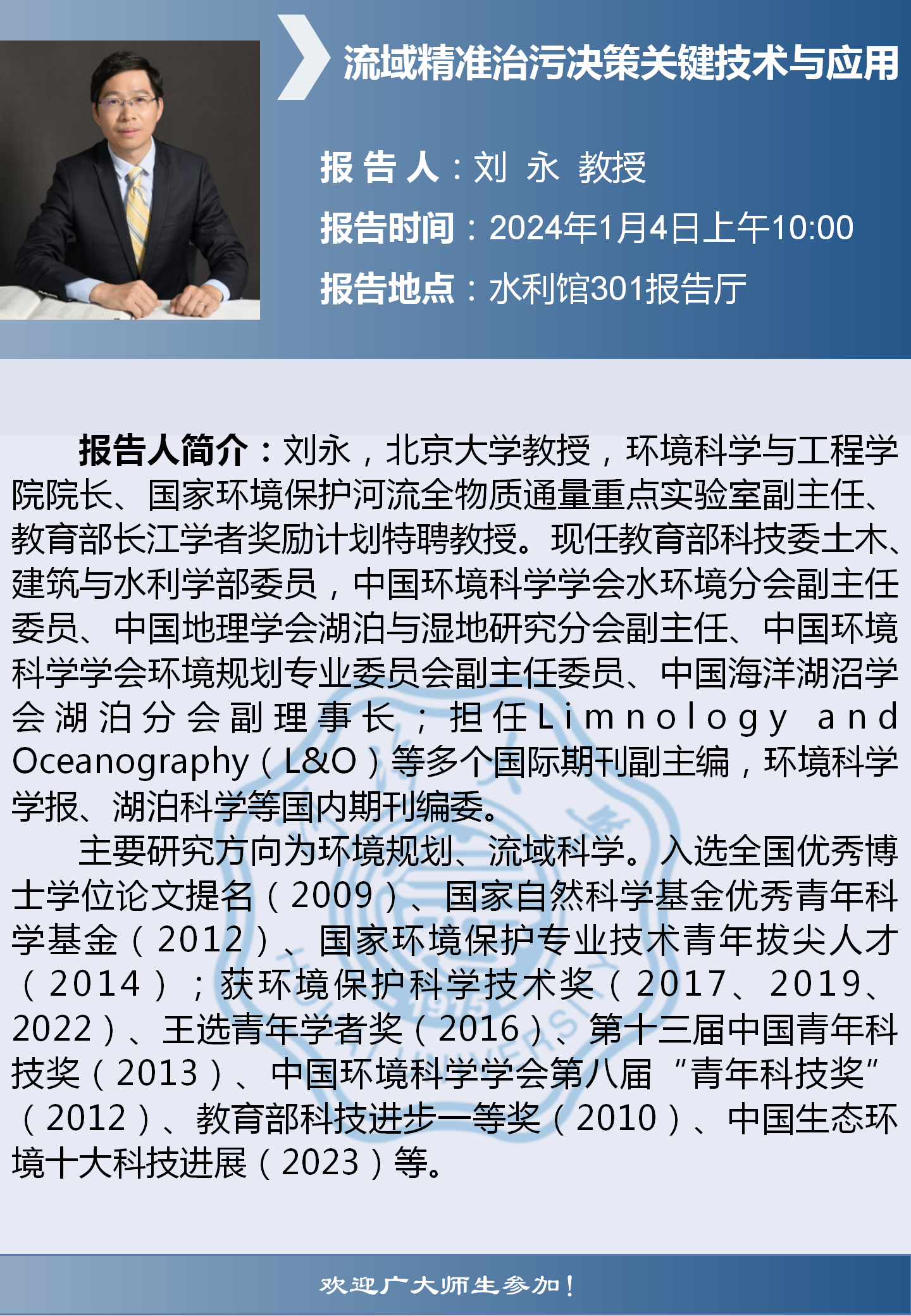 云顶国际yd333学术报告:流域精准治污决策关键技术与应用