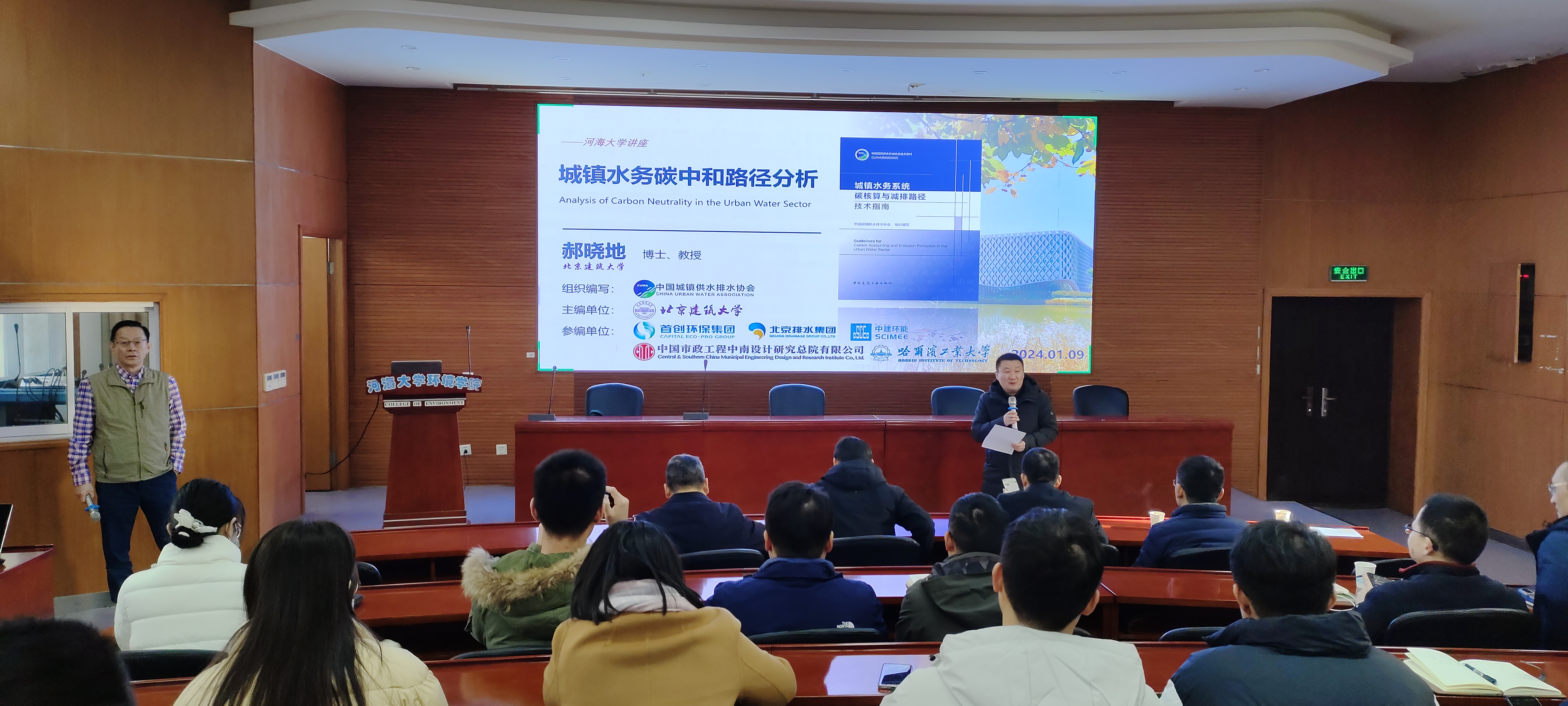 2024年1月9日上午,北京建筑大学郝晓地教授在水利馆301报告厅为云顶国际yd333师生带来了一场题为“城镇水务碳足迹核算与碳中和路径”的专题学术讲座。此次讲座线上线下同步进行,我院师生积极参与。云顶国际yd333副院长林涛代表学院师生对郝教授的到来表示了热烈的欢迎。